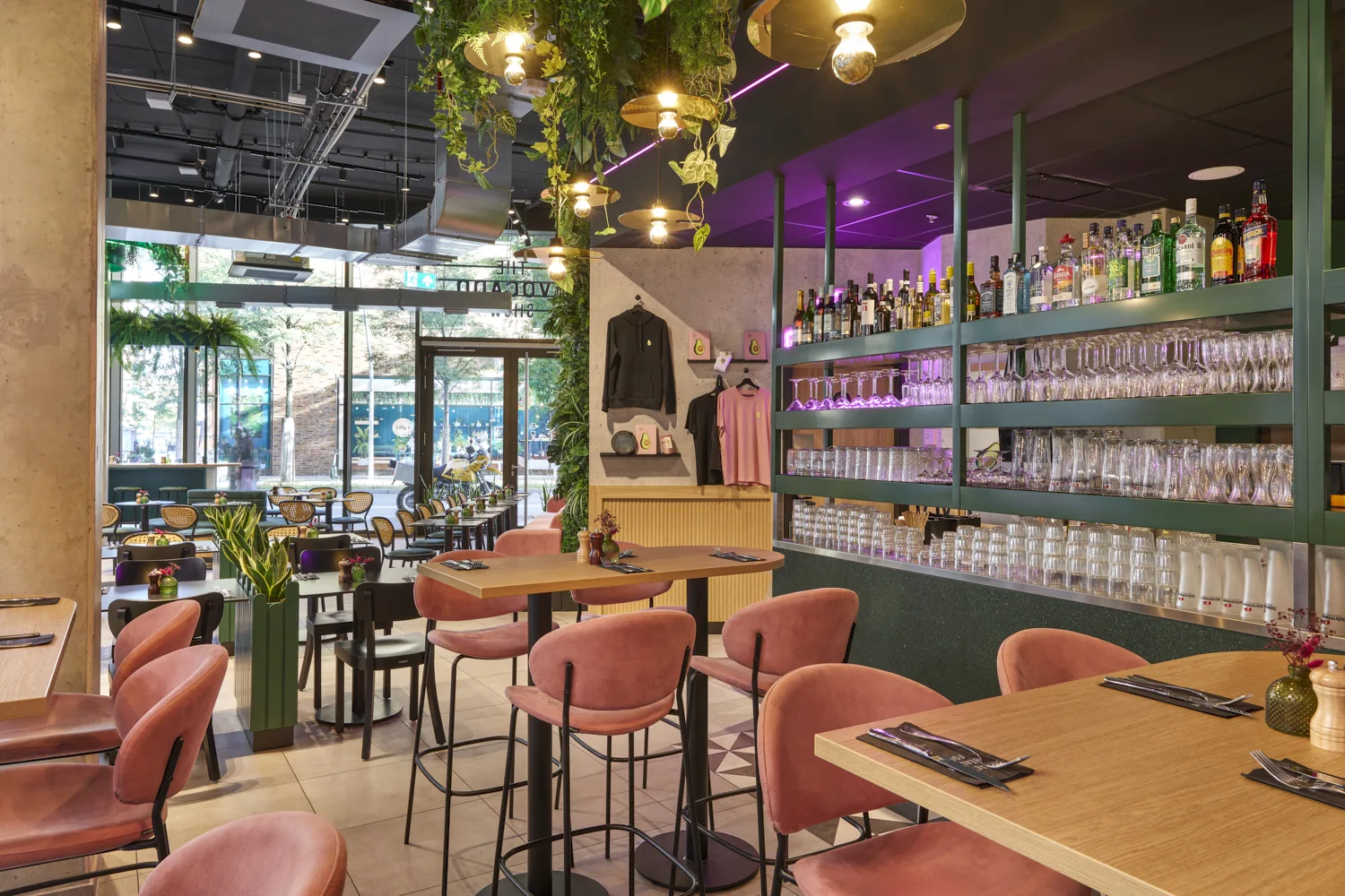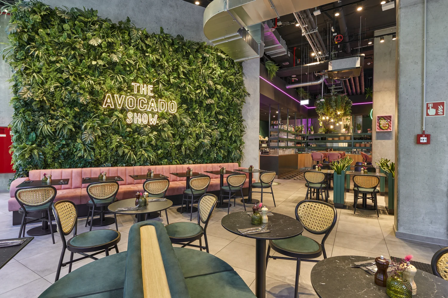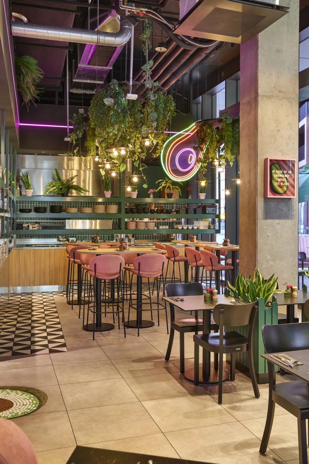 Mit der neuen Fläche von The Avocado Show im Westfield Center am Überseeboulevard entstand ein Gastronomieraum, der durch eine klare Formsprache und ein frisches, modernes Gesamtbild überzeugt. Prägend sind kräftige Grüntöne, gezielte Rosa-Akzente, üppige Begrünung und offene Strukturen, die dem Raum eine lebendige, zugleich geordnete Wirkung verleihen. Das Zusammenspiel aus Farbe, Licht und Raumform definiert eine markante Identität, die die Marke unmittelbar sichtbar macht.